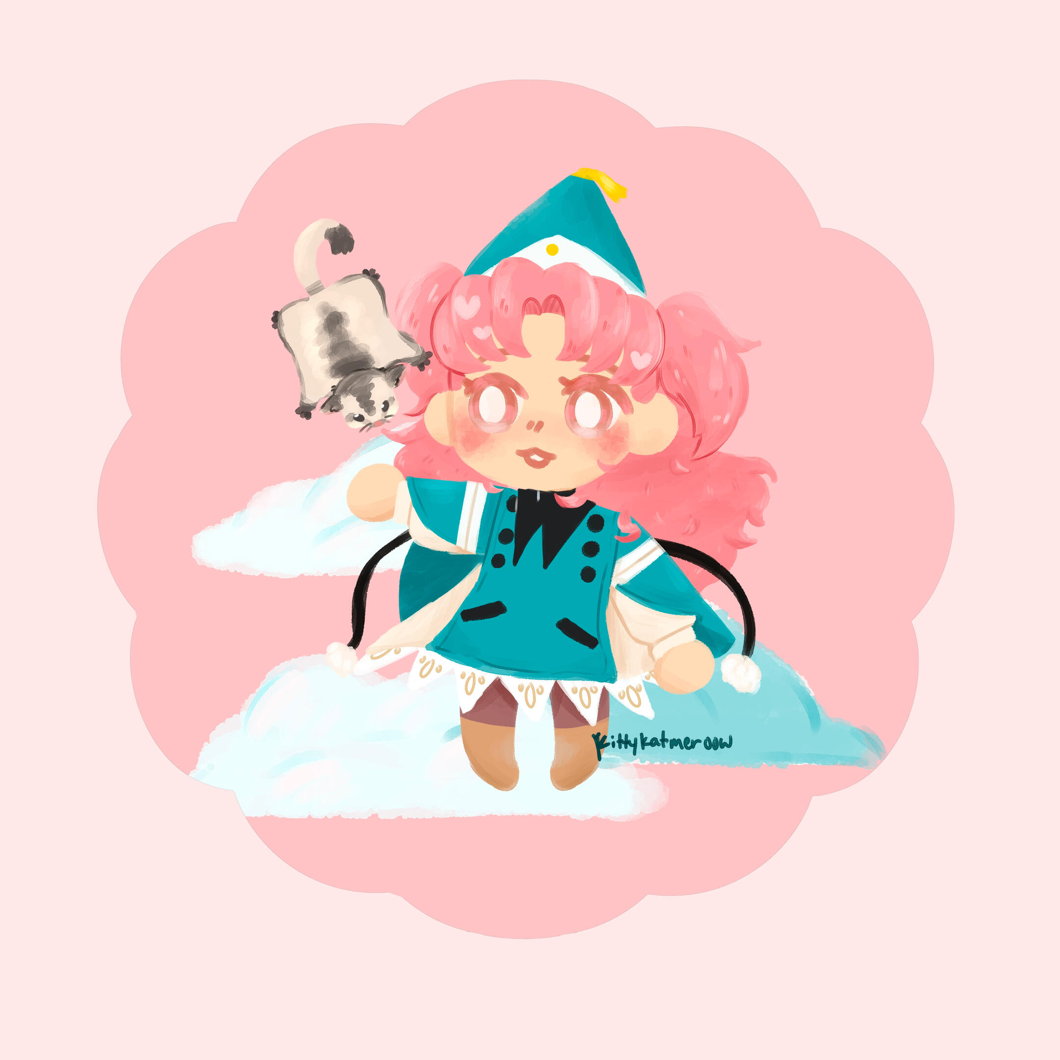 these days i have a focus in 2D digital work, creating prints, acrylic charms, and other trinkets through this medium. i also work with polymer clay to create handmade goods such as pins and earrings! my inspiration comes from anime, memes, and cute things.when i am not making music or art, im on the search for local sweets, going to concerts, training my corgi puppy named soup, or playing dungeons and dragons!